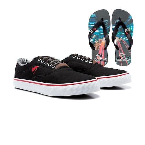 Este Kit da Polo North traz praticidade e estilo para o seu cotidiano. O Sapatênis Vulcan Pro da Polo North traz um visual clássico que torna o modelo essencial no guarda roupa masculino. Confeccionado em lona e sintético, o modelo apresenta o logo da marca bordado na lateral e impressiona por sua resistência e durabilidade. Possui forro interno em tecido e espuma, além de palmilha de EVA macio, combinação que proporciona conforto aos pés, mesmo em uso prolongado. E o seu fechamento com cadarços em couro, aliado ao solado de borracha vulcanizado, garante aderência e o mais alto nível de absorção de impacto ao caminhar. E para complementar temos um lindo chinelo masculino, que torna este kit versátil para o dia a dia no trabalho, momentos de lazer, passeios ou eventos casuais.