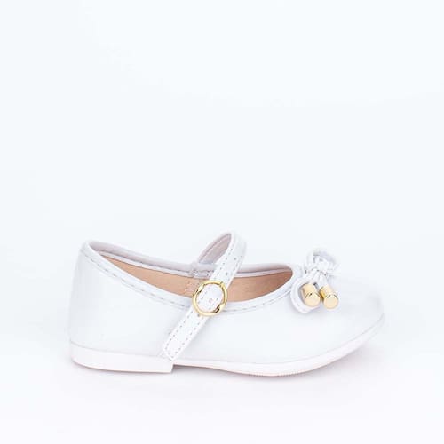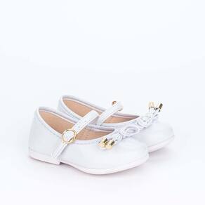 Sapatilha Bailarina para pezinhos na fase da pré caminhada. Produzida em material verniz macio e flexível ela traz todo o conforto que as pequenas precisam. O enfeite de lacinho deixa o modelo ainda mais delicado e a tira no peito do pé com fechamento de fivela concede um melhor ajuste. A palmilha anatômica almofadada é bem macia e confortável e a sola em TR antiderrapante não escorrega trazendo maior segurança. Perfeita para os momentos mais especiais, desde batizado, casamento ou para os passeios em família.