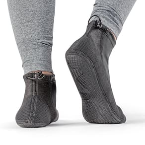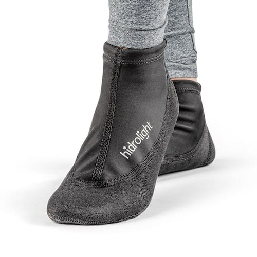 Vista o pé através do orifício e ajuste a compressão através do elástico.