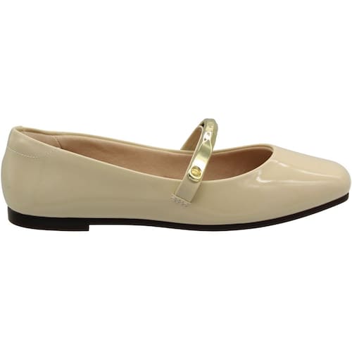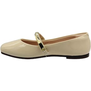 Sapatilha Beira Rio Verniz Bico Quadrado Adorno Feminina - Bege - 37