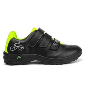 Produto desenvolvido com rigoroso padrão de qualidade e estudo de medidas, garantindo ótima anatomia e conforto em pedaladas longas para todos os formatos de pés. Cabedal em material tecnológico e malha com tramas abertas, proporcionando assim ótima estabilidade, resistência e ventilação interna. Sistema de fechos triplos (tiras autocolantes) possibilitando melhor ajuste independente do formato do pé do ciclista. Entressola reforçada para transferência de força, maximizando o rendimento nas pedaladas. Solado de borracha com ótima aderência em condições molhadas e escorregadias, garantindo sempre maior conforto e segurança ao caminhar.