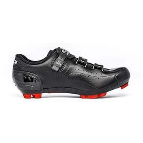 Mais leve e com mais desempenho, a nova sola Sidi mtb é feita de náilon com inserções de PU. A forma das pastilhas foi desenhada para o BTT, permite uma excelente aderência , facilita a dispersão da lama e dá a estabilidade certa . A inserção central marcada com a escrita Sidi atua como um antiderrapante , prático (útil), especialmente para os menos experientes. O dedo do pé , a área de maior desgaste (principalmente) ao caminhar, pode ser substituído por parafusos e sempre oferece a possibilidade de montar grampos para melhorar a tração em terrenos particularmente lamacentas. SR17 representa o resultado máximo em termos de rigidez ao pedalar e flexão ao caminhar.