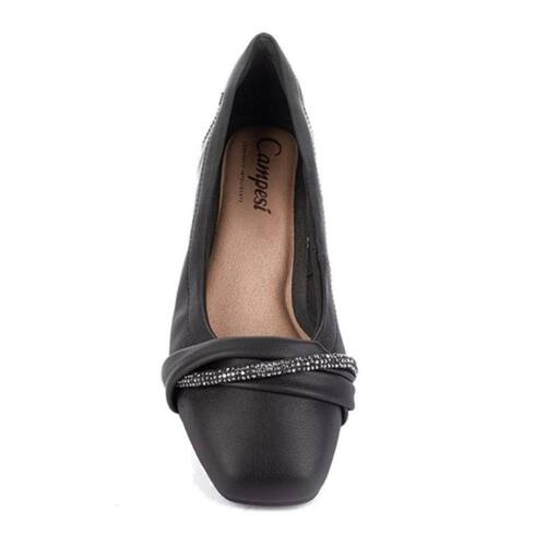 A Sapatilha Campesí Preta com Brilhos é a escolha ideal para mulheres que buscam estilo e sofisticação sem abrir mão do conforto. Esse modelo monocolor destaca a tira larga que envolve a tira fina repleta de brilhos, presentes na parte frontal do modelo e criando um visual único e elegante.