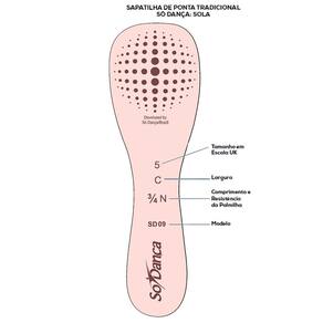 A Sapatilha De Ponta Só Dança Toshie Largura D Palmilha FN é super elegante pois não possuí plissado sob os dedos. Indicada para bailarinas do nível intermediário ao profissional. É fabricada com gáspea em formato de V, perfil baixo, palmilha inteira termo conformada (resina e fibra têxtil), forro em algodão, cabedal de cetim dublado e solado de couro. Sem plissado na região sob os dedos do pé.