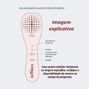 Elegante pois não possuí plissado sob os dedos, a sapatilha de ponta Toshie da Só dança é indicada para bailarinas do nível intermediário ao profissional. Com gáspea em formato de V, perfil baixo, palmilha inteira termo conformada (resina e fibra têxtil), forro em algodão, cabedal de cetim dublado e solado de couro.