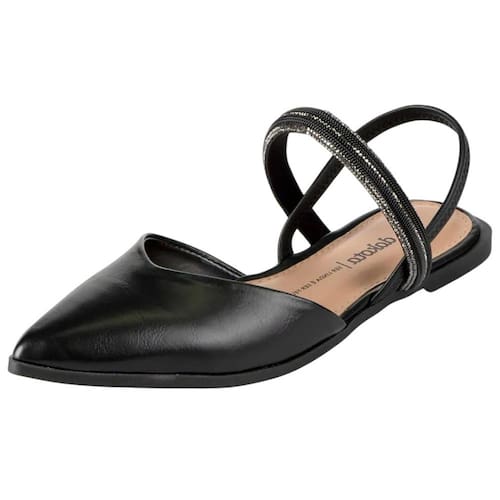 O bico fino alonga visualmente a silhueta e garante um ar refinado a qualquer produção. A tira com detalhes em brilho, combinada ao ecler decorativo, confere um toque glamouroso e atual ao modelo, perfeito para quem gosta de calçados com personalidade. A sola rasteira proporciona conforto e estabilidade ao caminhar, enquanto a tira maleável no calcanhar, sem fechamentos, garante praticidade ao calçar.