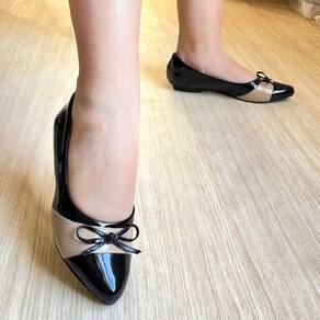 O detalhe bicolor adiciona um toque de estilo, enquanto o delicado laço no cabedal traz um charme adicional