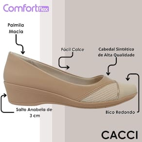 A Sapatilha Anabela é a opção ideal para mulheres que desejam aliar elegância, praticidade e conforto em todos os momentos do dia. Com um visual clássico e atemporal, ela se adapta com facilidade a diferentes estilos e ocasiões, seja para compor um look profissional mais discreto, acompanhar uma rotina agitada ou completar produções casuais com charme e delicadeza. Confeccionada em material sintético de alta qualidade, conta com tecido respirável e detalhes em tecido que proporcionam frescor, leveza e um toque macio ao calce, tornando-a perfeita para o uso prolongado. Seu salto anabela baixo de 3 cm oferece a dose certa de elevação com estabilidade, mantendo o conforto em evidência sem abrir mão da feminilidade. O solado antiderrapante garante segurança ao caminhar, oferecendo mais confiança em diferentes tipos de piso. Com bico arredondado e acabamento cuidadoso, essa sapatilha é a escolha certa para quem valoriza bem-estar, sofisticação e versatilidade em um só calçado.