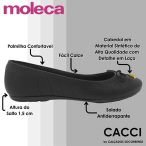 Delicada, confortável e cheia de charme, a Sapatilha Moleca é aquele A Sapatilha Feminina Moleca é aquele modelo que conquista à primeira vista e depois, no primeiro passo. Com palmilha super macia e excelente absorção de impacto, ela garante conforto para o dia inteiro, seja no trabalho, nos compromissos ou nos momentos de lazer.