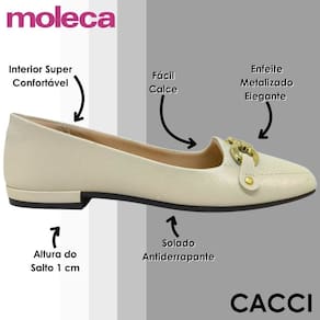 A Sapatilha Moleca é aquela peça que une tudo o que você procura em um calçado para o dia a dia: conforto, praticidade e um toque de elegância que faz toda a diferença no visual. Desenvolvida para oferecer bem-estar desde o primeiro uso, ela conta com interior super confortável, com acabamento macio que envolve os pés com suavidade e garante uma experiência agradável mesmo após muitas horas de uso.