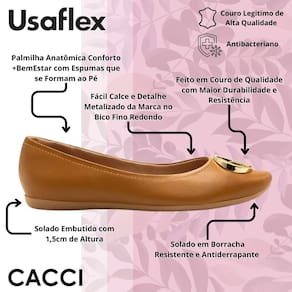 A Sapatilha Feminina Conforto Usaflex foi criada para acompanhar você em todos os momentos do dia, unindo sofisticação e conforto em um só produto. Com um design delicado e acabamentos de qualidade, ela é a opção ideal para quem busca praticidade e estilo sem abrir mão do bem-estar.