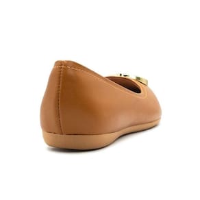 Bico fino redondo com detalhe metalizado da marca, trazendo um toque de elegância e modernidade.