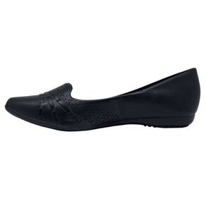 Design Elegante e Versátil: Com um bico fino que confere um toque de modernidade e um acabamento em couro de alta qualidade, esta sapatilha é perfeita para compor desde looks casuais até produções mais refinadas. Os microfuros respiráveis garantem frescor e ventilação, mantendo seus pés confortáveis durante todo o dia.