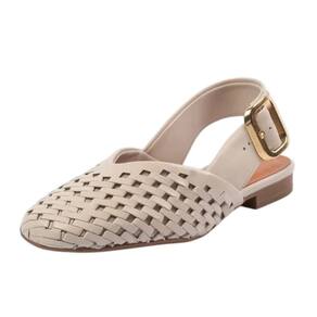 O ajuste é feito por uma tira traseira com detalhe lateral em metal, oferecendo até sete níveis de regulagem para um encaixe seguro e personalizado. O solado antiderrapante aliado ao saltinho discreto de aproximadamente dois centímetros proporciona estabilidade e praticidade, ideal para quem deseja estilo sem abrir mão do conforto.