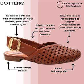 Esse modelo Bottero traz a combinação perfeita de elegância e conforto para o dia a dia. Confeccionado em couro de alta qualidade, ele se destaca pelo trabalho em relevo trançado na parte frontal, que adiciona um toque artesanal e sofisticado. A palmilha macia, também em couro, garante bem-estar em cada passo, proporcionando maciez durante todo o uso.