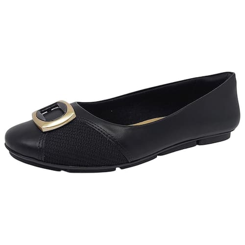 A sapatilha feminina da ComfortFlex foi criada para oferecer elegância e bem-estar ao longo do dia. O cabedal é confeccionado com material de alta qualidade e conta com detalhe metalizado, além de malha lateral que se adapta com suavidade aos pés, proporcionando conforto extra em áreas delicadas como a dos joanetes. O design com bico redondo complementa o visual com discrição e charme.
