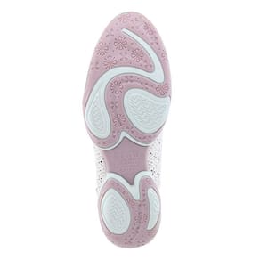 Delicado e com designer clássico e muito estilo. Seu cabedal é em sintético com padronagem cortadas a laser e o broche com o nome da marca em dourado. Seu interior é têxtil e sua palmilha é removível produzida em EVA e para calça-lo basta colocar nos pés.