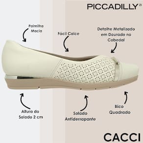 A sapatilha Piccadilly Anabela possui um cabedal em napa com um delicado efeito pontilhado, proporcionando estilo e modernidade. O material é resistente e flexível, garantindo conforto durante o uso. A palmilha é macia e feita em espuma, oferecendo excelente absorção de impactos. O solado é de TR, garantindo aderência e segurança ao caminhar. O salto anabela tem aproximadamente 2 cm de altura, ideal para quem busca um leve aumento de estatura sem abrir mão do conforto. A calcanheira é acolchoada, proporcionando suporte extra para a região do calcanhar. O bico arredondado garante mais espaço para os dedos, tornando a experiência de uso ainda mais confortável. O fechamento é do tipo slip-on. O detalhe pontilhado no cabedal confere um charme discreto e refinado ao design. Esta sapatilha é a escolha perfeita para quem deseja conforto e estilo no dia a dia, sem abrir mão da elegância.