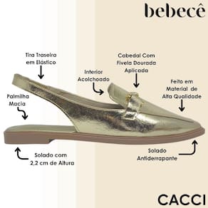 Essa slingback dourada da Bebecê é o toque de brilho que faltava no seu visual. Um modelo que une elegância moderna, conforto absoluto e um acabamento que chama atenção em qualquer produção. O detalhe metálico aplicado no cabedal entrega sofisticação sem esforço e transforma essa peça em um verdadeiro coringa para o dia e para a noite. O acabamento metalizado traz um ar glamouroso e atual, perfeito para quem ama se destacar com estilo.