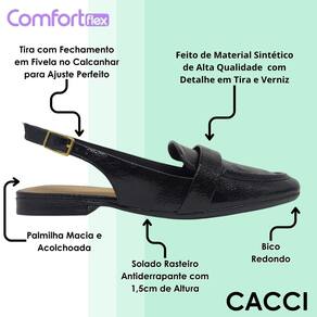 A sapatilha feminina slingback Comfortflex é a definição perfeita de conforto com sofisticação, ideal para quem busca estilo aliado à praticidade no dia a dia. Seu cabedal é confeccionado com material resistente e acabamento em verniz que proporciona brilho sutil e toque moderno, enquanto a tira com fechamento ajustável no calcanhar garante firmeza e encaixe ideal nos pés, adaptando-se com facilidade a diferentes formatos. O design slingback com abertura traseira permite excelente respirabilidade e um visual mais leve para os dias quentes.