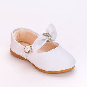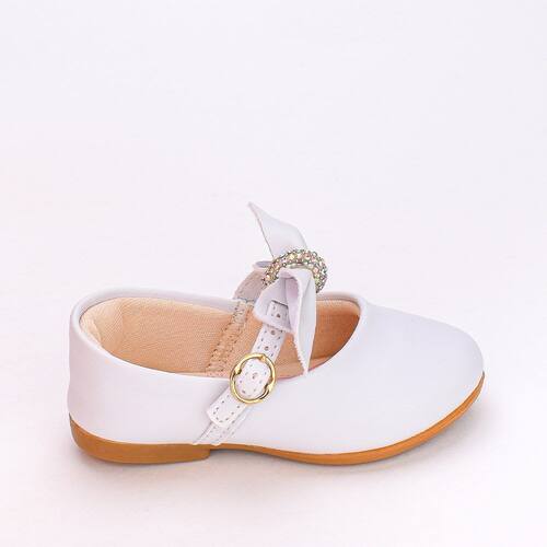 Encante os passos da sua pequena. Em um delicado tom de branco e adornada com um gracioso laço e detalhes em strass essa sapatilha é também um acessório que adiciona charme e elegância a qualquer ocasião e look. Esse modelo além de lindo, cuida do conforto e segurança dos pezinhos. Equipada com um prático fechamento em fivela dourada, garante segurança e facilidade ao calçar. Sua construção anatômica oferece o suporte ideal para os pés em desenvolvimento, enquanto a sola antiderrapante proporciona estabilidade e confiança em cada passo. Conta também com a palmilha anatômica medidora, que facilita a verificação do desenvolvimento do pé e saber quando é a hora de trocar o calçado. Seja para uma festa especial, um passeio no parque ou simplesmente para dar um toque de estilo ao dia a dia, esta sapatilha é a escolha ideal para uma experiência de conforto, estilo e segurança que sua pequena merece.