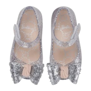 Com cores brilhantes e um toque de glitter mágico, cada passo é uma aventura cheia de brilho. O maxi laço, adornado com o rosto adorável da Barbie, adiciona um toque de glamour extra, enquanto os detalhes em hotstamp garantem que cada olhar seja único.