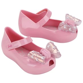 Com cores brilhantes e um toque de glitter mágico, cada passo é uma aventura cheia de brilho. O maxi laço, adornado com o rosto adorável da Barbie, adiciona um toque de glamour extra, enquanto os detalhes em hotstamp garantem que cada olhar seja único.