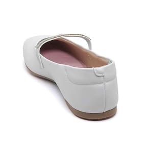 A sapatilha apresenta um cabedal em sintético liso na cor branco, oferecendo um visual clean e elegante. A tira com poder elástica coberta em strass que passa na parte superior do pé não só adiciona um toque de brilho e glamour, mas também garante um ajuste seguro e confortável.