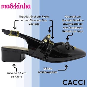 O salto de 3,5 cm é ideal para dar aquele toque especial de elegância sem comprometer a leveza e o bem-estar que as crianças precisam. Já o solado antiderrapante assegura estabilidade a cada passo, proporcionando mais segurança para que a diversão aconteça com liberdade e confiança. Um calçado que vai muito além da estética: ele acompanha com estilo os momentos mais marcantes da infância.