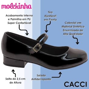O solado antiderrapante reforça a segurança em cada passo, oferecendo mais aderência ao solo e evitando escorregões indesejados. Já o salto de 2,5 cm dá um toque sutil de sofisticação, permitindo que as meninas se sintam confiantes e estilosas sem comprometer a leveza e a liberdade de movimento. Um modelo que une beleza, conforto e segurança em uma única escolha para acompanhar a infância com estilo.