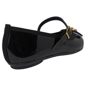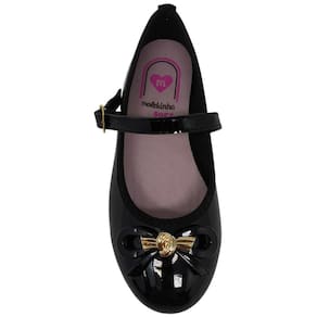 Seu cabedal é confeccionado em material sintético envernizado de alta qualidade, que oferece resistência e um acabamento sofisticado. O destaque fica por conta do delicado laço aplicado na parte frontal, que adiciona feminilidade e um ar delicado ao modelo. A tira boneca ajustável proporciona um encaixe firme e seguro nos pezinhos, garantindo praticidade e estabilidade durante o uso.