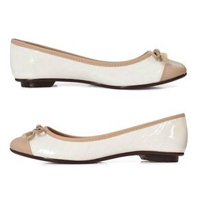 Sapatilha Moleca Bico Redondo Verniz Laço Feminina Branco Bege - 38 - Branco