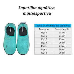 A Sapatilha aquática Multiesportiva foi feita para você surfar, mergulhar, usar em embarcações, Jet ski e caminhadas na praia. A Aqurun é confeccionada com tecnologia Spandex, um material sintético que se mantém justo ao pé para melhorar nos movimentos e com secagem rápida.
