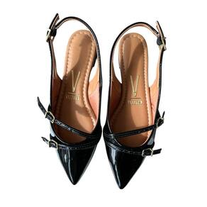 Sapatilha Slingback Aberta Feminina Fivela Verniz Vizzano - 39 - Preto