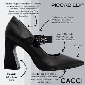 Charmosa e delicada. Com o Salto Boneca, você estará caminhando com confiança e elegância a cada passo. Esse modelo combina uma cor neutra com um design delicado. Os calçados com essa tendência ganham ainda mais charme devido a sua versatilidade. O calçado possui solado superaderente e palmilha super-estabilidade garantindo mais segurança ao caminhar. O acabamento confortável, o forro superfofinho e a espuma fofinha no calcanhar torna-a indispensável para quem precisa ficar horas de pé no trabalho. Ela oferece máxima absorção controlando tanto umidade quanto temperatura. Já com a palmilha anatômica, ele proporciona maior absorção de impactos. Para um look fashion e elegante, combine o modelo com peças de alfaiataria, como calças de corte reto e blazers estruturados. Acrescente acessórios sofisticados e esteja pronta para arrasar em qualquer ocasião. PICCADILLY, caminhe em direção ao novo e se surpreenda com o conforto! Você sabia que todos os produtos da PICCADILLY têm o Calce Perfeito? É um conjunto de benefícios exclusivos que respeita a anatomia do pé, diminui o cansaço e permite que você vá mais longe nas suas jornadas diárias.