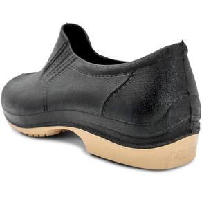 proveniente de operações com uso de água. Não possui biqueira de segurança. O cabedal é confeccionado 100% em poliuretano, o solado é constituído poliuretano bidensidade na cor marrom,