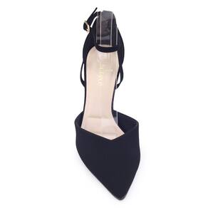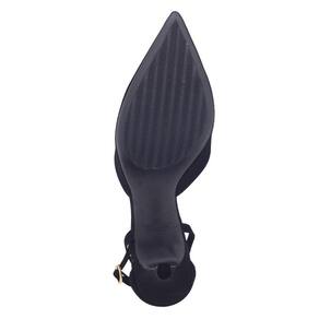 Salto: médio 6,5cm de altura aproximadamente, solado com frisos para maior segurança.