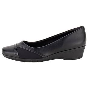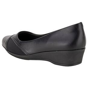 O Sapato Feminino Anabela ComfortFlex é confeccionado em Napa de alta qualidade com acabamento em costura, detalhe em textura e material metalizado no cabedal, forro interno em têxtil, palmilha em PU e solado em borracha antiderrapante com salto de quatro centímetros.