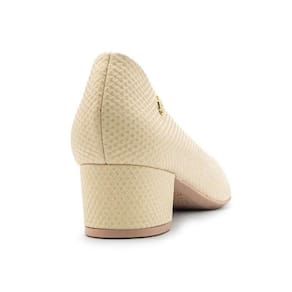 Salto bloco de 5 cm de altura, que proporciona conforto, estabilidade e um toque de elegância para qualquer ocasião.