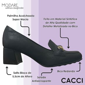 Com design elegante e toque moderno, este modelo da Modare combina conforto e sofisticação em cada detalhe. O salto bloco de 5,5 cm oferece a altura ideal para quem busca estabilidade e estilo ao mesmo tempo, sendo perfeito para acompanhar sua rotina com leveza e segurança. O bico redondo confere um visual delicado e atemporal, tornando o calçado uma peça versátil para diversas ocasiões.