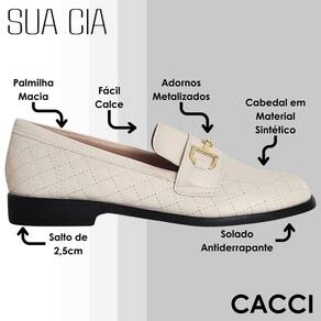 O clássico loafer ou mocassim como também é conhecido, ressurge na coleção Sua Cia, em material napa soft repaginado com o adorno em dourado no cabedal - detalhe que dá todo um charme delicado ao modelo. Atemporal e muito confortável é uma aposta certeira para deixar qualquer produção mais sofisticada!