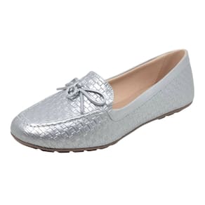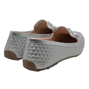Com um acabamento metalizado e um delicado laço decorativo, este mocassim oferece um visual sofisticado e contemporâneo. Perfeito para adicionar um toque de brilho e elegância a qualquer look, seja com calças, saias ou vestidos.