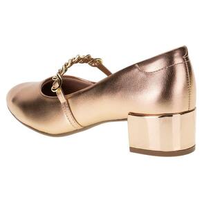 O Sapato Feminino Salto Grosso Beira Rio é confeccionado em material metalizado de alta qualidade com detalhe dourado no cabedal, acabamento em costura, forro interno em têxtil, palmilha em PU e solado em borracha antiderrapante com salto baixo de quatro centímetros e meio.