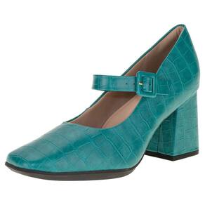 O Sapato Feminino Salto Grosso Piccadilly é confeccionado em Napa texturizada de alta qualidade com tira para fechamento por fivela, acabamento em costura, forro interno em têxtil, palmilha em PU e solado em borracha com salto de oito centímetros.