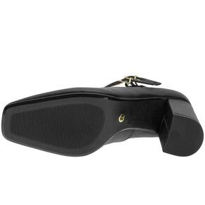 O Sapato Feminino Salto Grosso Vizzano é confeccionado em Pelica de alta qualidade com acabamento em costura, fechamento por fivela no cabedal estilo sapato boneca, forro interno em têxtil, palmilha em PU e solado em borracha com salto alto de dez centímetros.