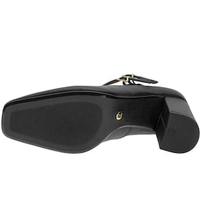 O Sapato Feminino Salto Grosso Vizzano é confeccionado em Pelica de alta qualidade com acabamento em costura, fechamento por fivela no cabedal estilo sapato boneca, forro interno em têxtil, palmilha em PU e solado em borracha com salto alto de dez centímetros.