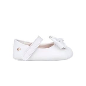 Sapato de bebê feminino em sintético branco com laço adornado! Sapato com forro em tecido que auxilia na absorção do suor e espuma para acolher e cuidar dos pezinhos sem interferir no desenvolvimento natural. Sapato infantil flexível com calce fácil, facilitando o dia a dia da mamãe!