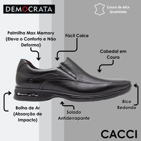 O Sapato de Couro Smart Comfort Air Spot é confeccionado em couro, com a tecnologia stretch, que traz maciez e elasticidade ao calçado, tornando perfeito o ajuste aos seus pés. Possui elástico nas laterais que facilita o uso, cabedal com recortes no couro e, ainda, forro feito em tecido cacharrel. Sua sola de PU traz a tecnologia Air, bolha de ar posicionada no calcanhar do calçado que absorve o impacto do pisar, protegendo as articulações. Além disso, acompanha a Palmilha Max Memory, que tem maciez e memória, prolongando o conforto ao pisar e não deformando com o uso.