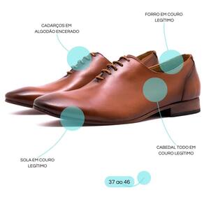 ACONSELHAMOS A COMPRAR SEU NÚMERO HABITUAL O Sapato Social Wholecut em 100% couro é a definição de sofisticação e exclusividade. Com design minimalista e refinado, este modelo é esculpido a partir de uma única peça de couro, garantindo um acabamento impecável, sem costuras visíveis, e uma presença marcante em qualquer ocasião. Feito para homens exigentes, o Wholecut une estilo atemporal, durabilidade e conforto premium. Seu interior é forrado com materiais nobres e respiráveis, oferecendo bem-estar absoluto mesmo em longos períodos de uso. Já o solado leve, com excelente aderência, proporciona segurança e estabilidade até nos ambientes mais elegantes. Disponível até o número 46, esse modelo se ajusta perfeitamente a diferentes perfis, entregando uma experiência de uso superior e um visual inconfundível. Seja no ambiente de trabalho ou em eventos formais, o Wholecut é um verdadeiro símbolo de bom gosto e distinção masculina. MATERIAIS Confeccionado: Couro Forro: Couro Palmilha: Tecido espumado Sola: Couro Numeração ? 37 ao 46 Marca: Não Informado