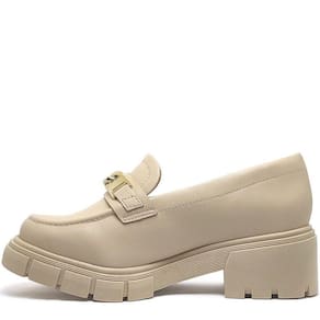 Mas a verdadeira estrela desse mocassim é seu solado tratorado, que eleva o patamar do seu estilo a novos horizontes. Com ele, você estará pronta para conquistar o mundo com uma pisada cheia de atitude e confiança. Faça apostas ousadas e combine-o com saias para um look feminino e poderoso. Experimente combiná-lo com peças de alfaiataria para um visual elegante com um toque de descontração. E, é claro, ele é o parceiro ideal para o indispensável jeans, garantindo um estilo casual chique que nunca sai de moda.